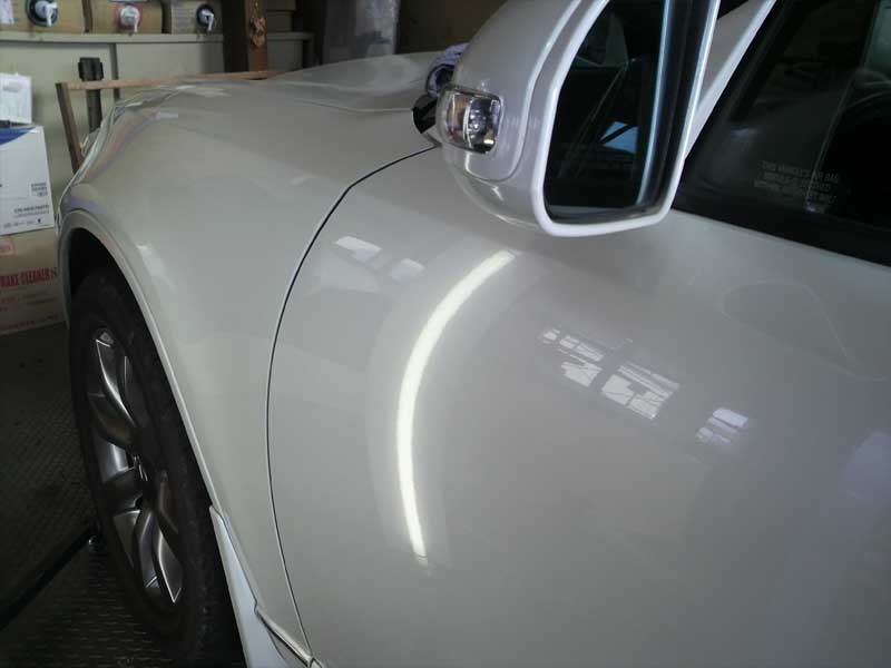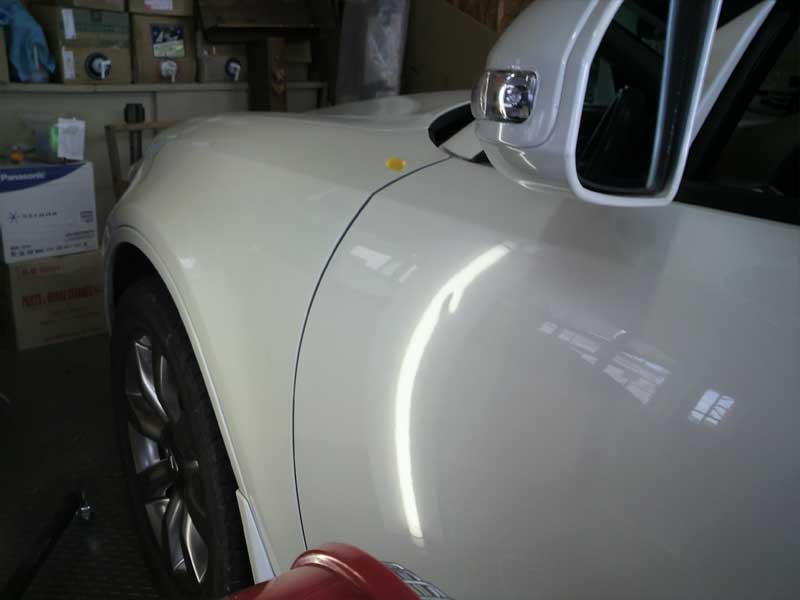 インフィニティ X35、左前ドアに2カ所のヘコミ。