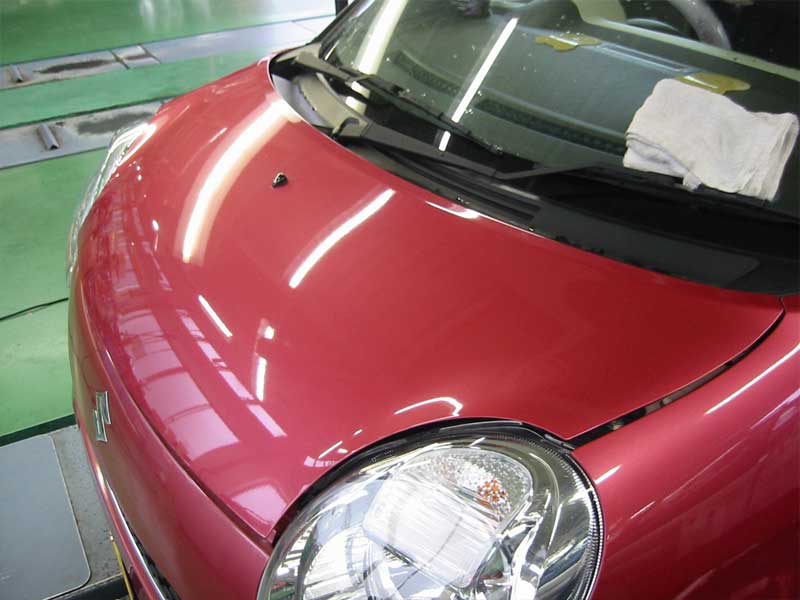 ボンネットを閉める時に手で押したのか、ヘコミの周りが広い範囲で歪んでいました。
