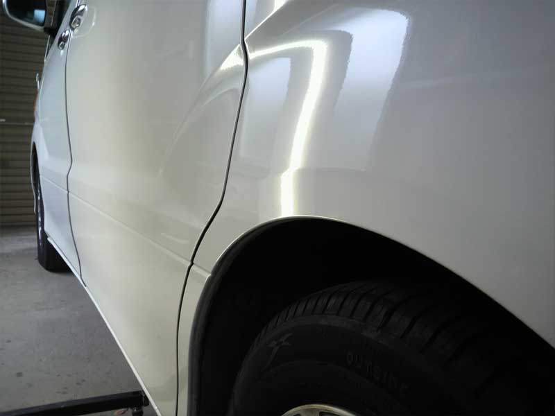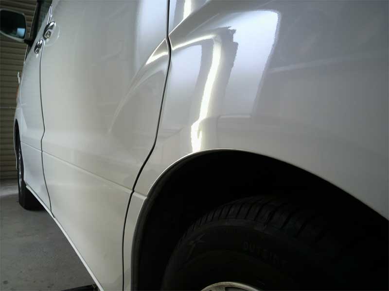 左後フェンダーのヘコミ。