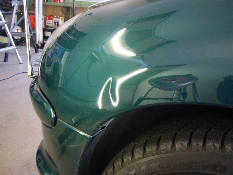 フロントフェンダーに強烈なドアパンチ。