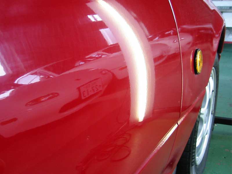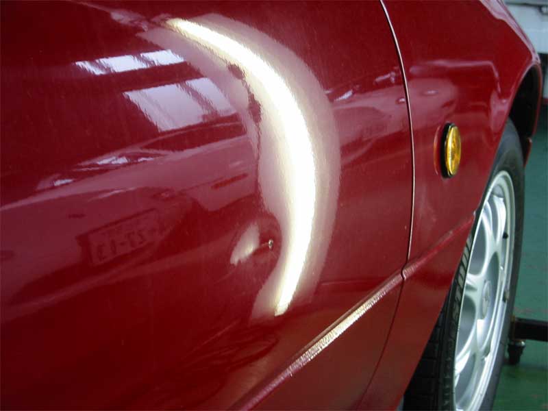 横に引きずったヘコミは直りにくく、どうしても補修跡が残ってしまいがちなので了解頂いた上での作業です。