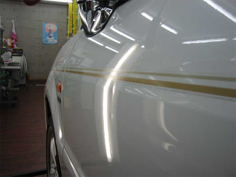 プレスラインに沿ってステッカーが貼ってありますが、