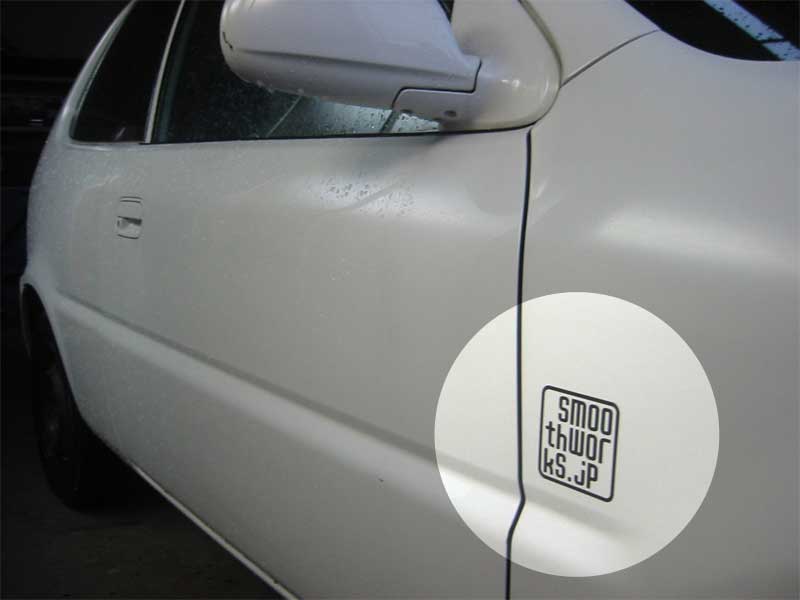 コメントが遅くなりすみません。当初は板金を覚悟してましたが、デントリペアで元通り!!大変満足してます。凹みもなくなったので近々磨き&コーティング予定、頂いたステッカーはその後貼らせてもらいます。また凹んだら宜しくお願いします。