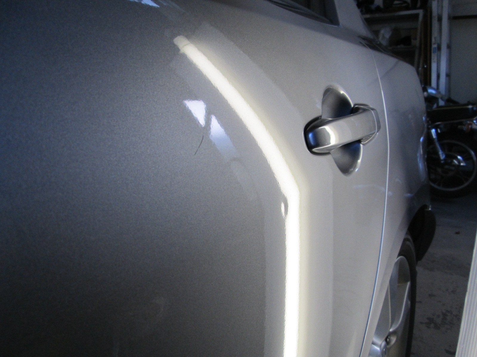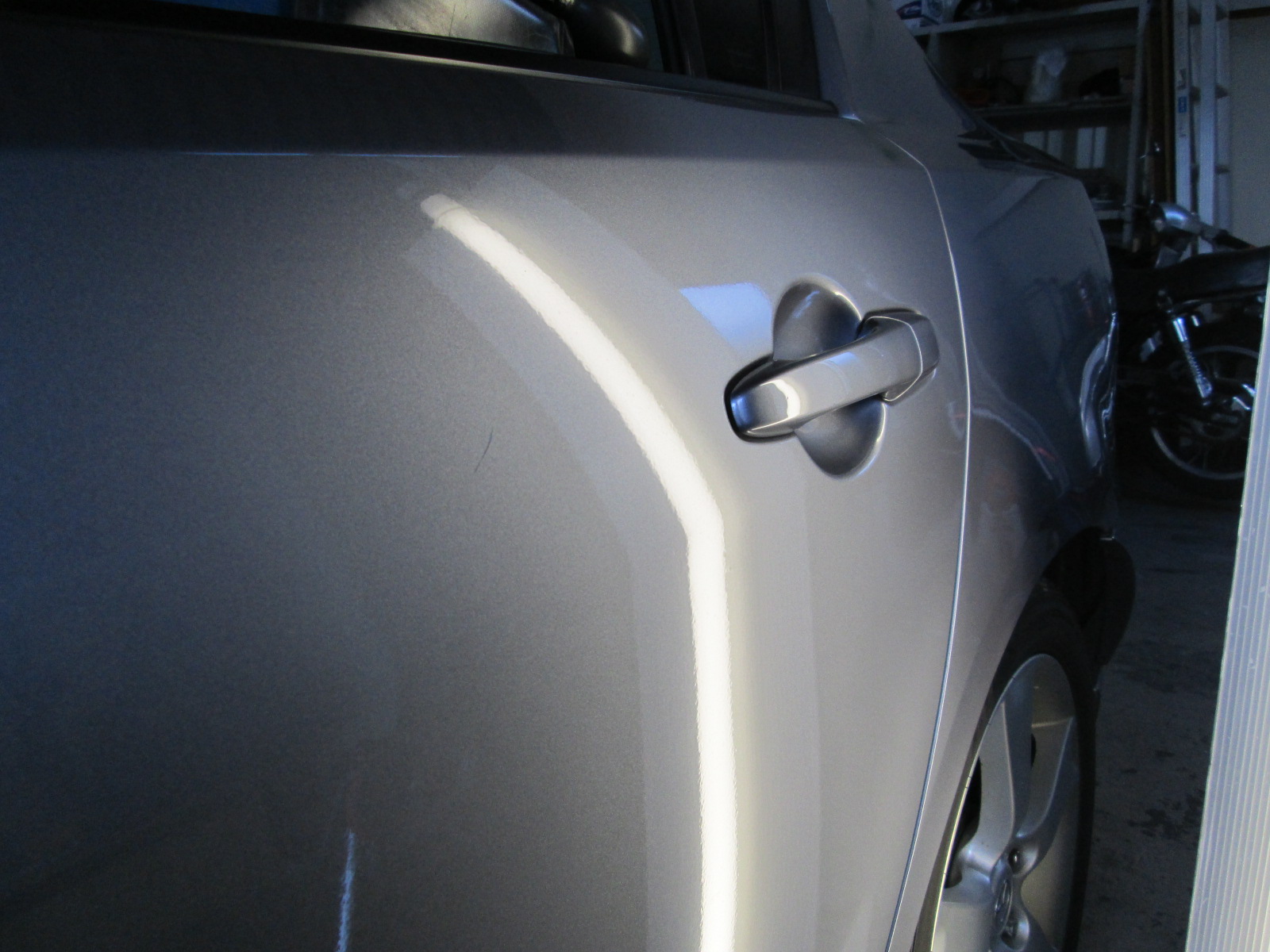 プレスラインをまたいで斜めに入ったヘコミで、ちょっと苦労しました。
